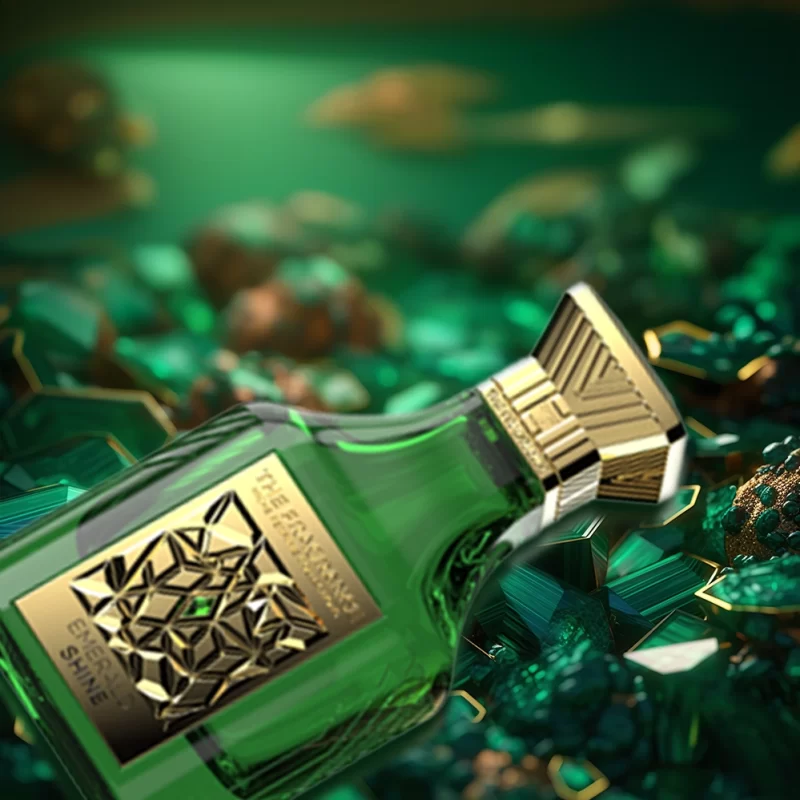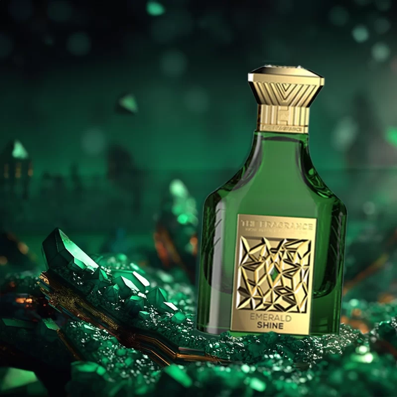 E merald shine was inspired by the cambridge emeralds the saga of a set of lovely emeralds, won in a lottery, and nearly lost to a love affair and now they shine bright on the english Queen's tiara. Emeralds are luminous and they are a statement of elegance. This was designed to be sparkling with grace. Emerald Shine's green bottle is adorned with a green gem in the middle of a gold plate that is emblazoned with The logo.